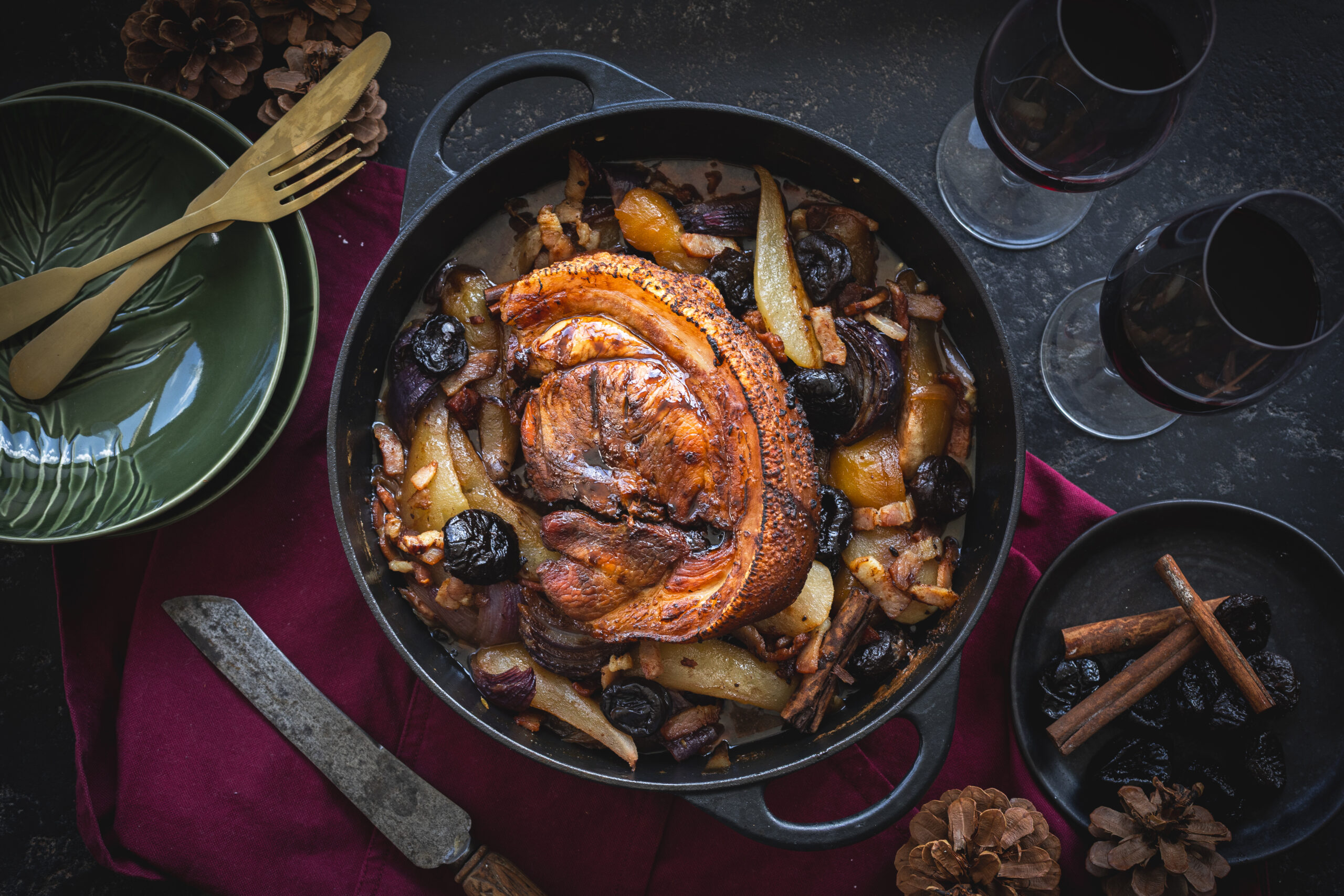 プルーンは、スパイスの香りとともに、お祝いの季節にぴったりの温かみを感じさせる、美しくつややかなソースを作るのにも一役買っています。